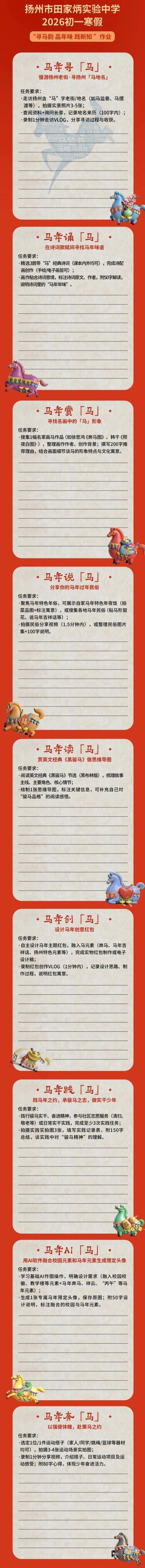 扬州市田家炳实验中学“寻马韵、品年味、践新知”初一年级寒假跨学科实践作业马年元素十足——