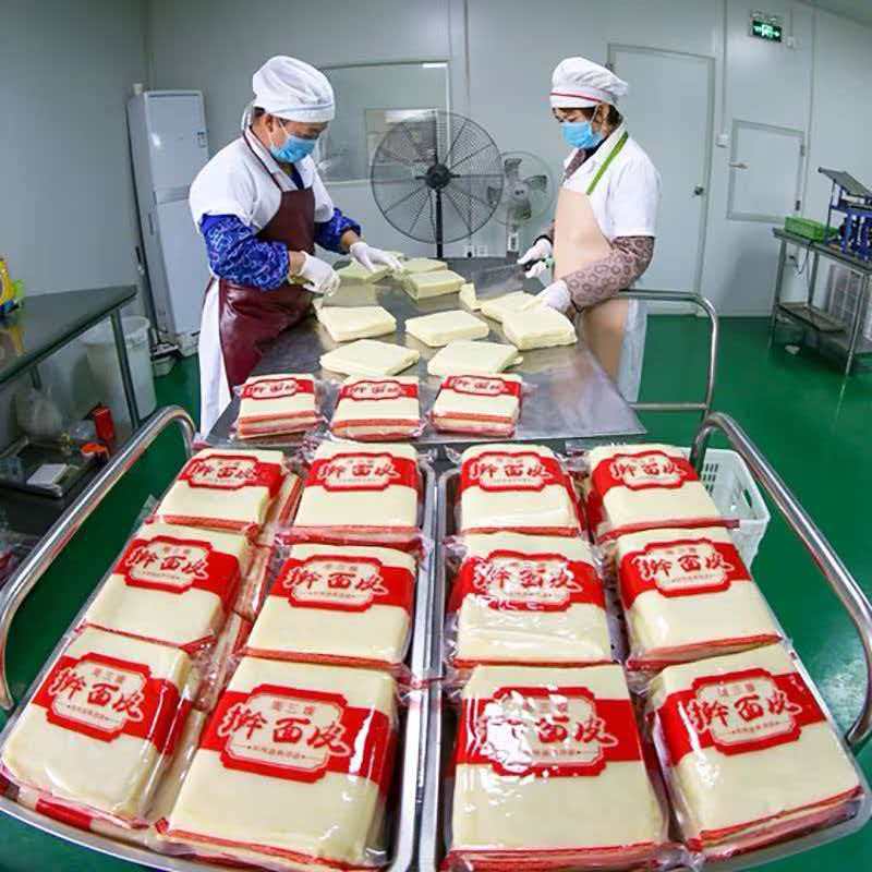 从车库到标准化厂房,从夫妻小作坊到正规企业,从无品牌到有专属商标,“周三嫂”的每一步成长,都伴随着一次跨越。如今车间内,机器轻鸣,20多名工人在和面、洗筋、分切、包装等岗位上井然有序忙碌。标准化调料间实现精准配比,自动化设备保障口感稳定,产品线也从单一擀面皮,拓展至米线、凉面、绿豆饼等多种风味,“周三嫂”已经成为当地小有名气的特色食品品牌。