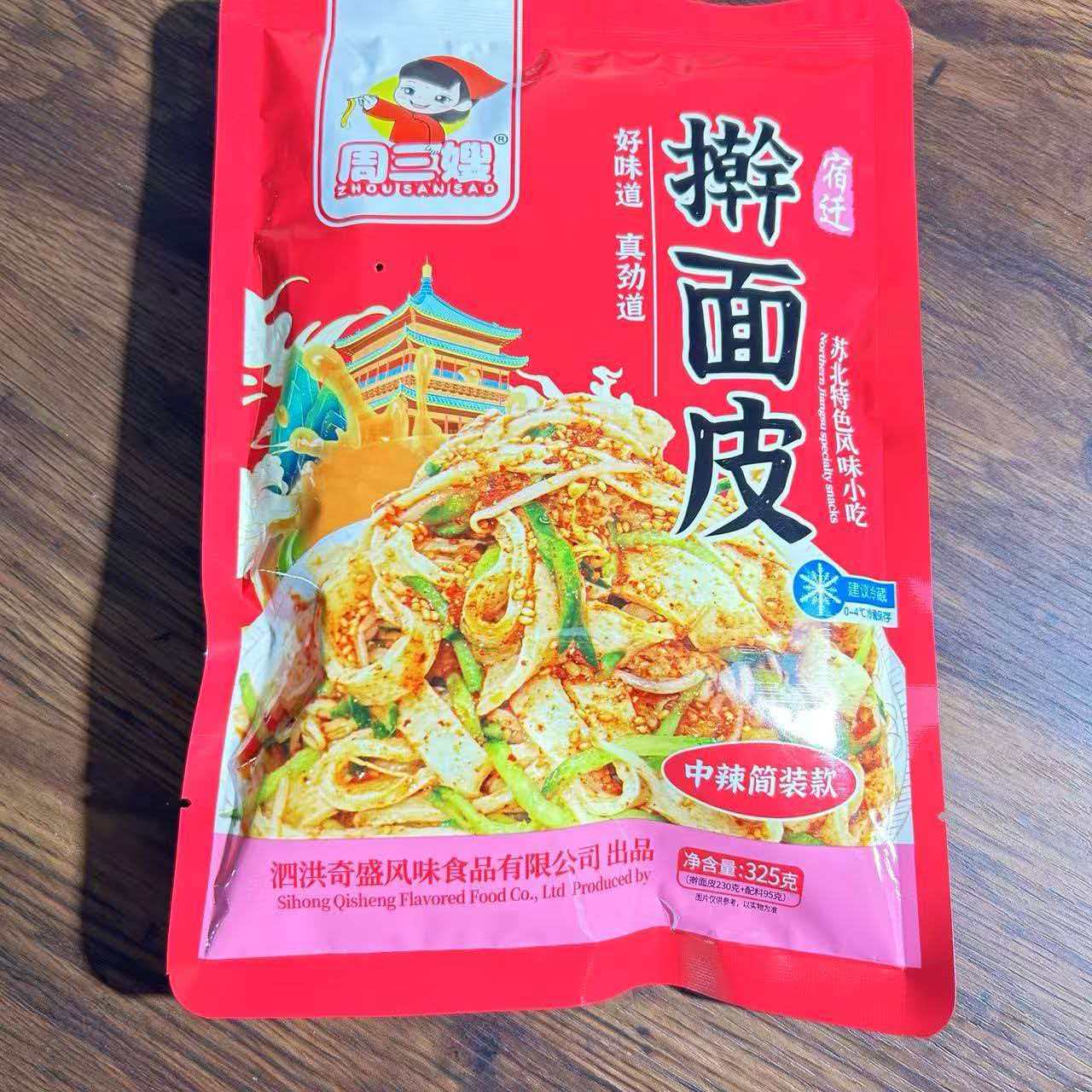 喜事接踵而至,取得生产许可证仅1个月后,石小亮精心培育的独有商标“周三嫂”正式获批。“‘周三嫂’这个名字,既有家乡的亲切感,也藏着我们夫妻创业的初心,就想着用这个商标,把泗洪擀面皮的地道风味传递给更多人。”石小亮介绍,商标获批后,他们立刻更新了产品包装,统一了品牌形象,“周三嫂”擀面皮的辨识度大幅提升,订单量也随之迎来新一轮爆发,不仅覆盖本地,更远销周边省市。