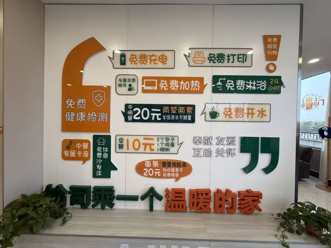这个占地800平方米的“司机之家”,设有健康监测、阅览休息、淋浴洗衣、微波加热等多个功能区,还推出免费健康监测、24小时热水淋浴、免费充电、免费沙发休息、免费打印、专属志愿服务等10项暖心举措。“春运假期,我们日均接待200人次,淋浴间每日使用峰值能达70次,洗衣、热饭这些服务,每天也得有超百次。”服务区主任沈亮调出后台数据,“我们特别定制优惠套餐,让司机们花小钱吃好饭,解决他们‘吃饭贵、休息难’的痛点。”
