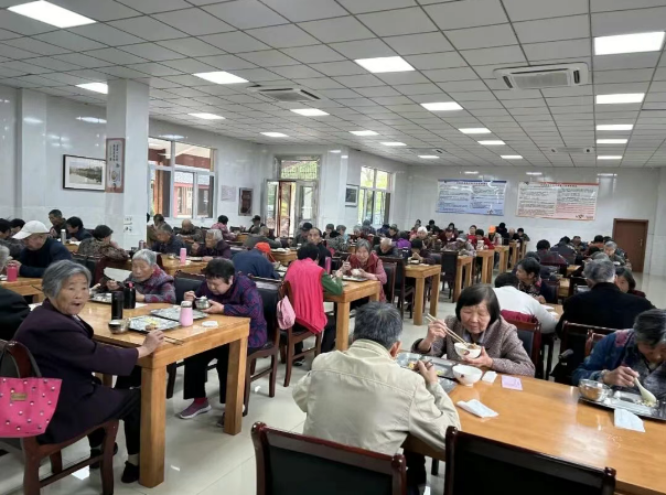 宜兴市张渚镇善卷村的老年食堂,每个工作日上午10点半准时开饭。82岁的魏红娣老人端着餐盘走出餐厅,红烧狮子头、清炒菠菜、杂粮粥的香气扑面而来。“每月交50元,一天两顿不重样,腿脚不便还有车接送。”魏红娣开心地介绍。