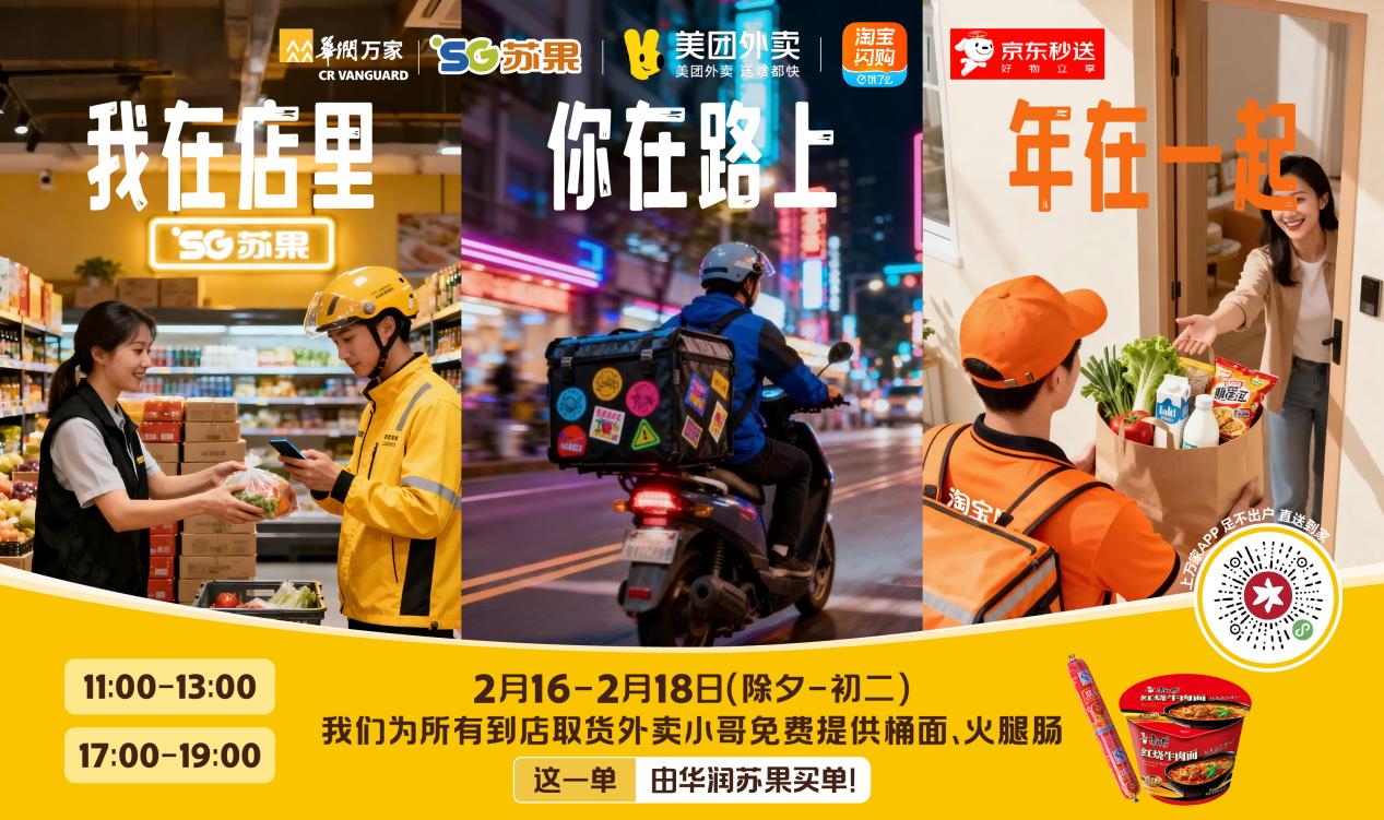 春节将至,阖家团圆的氛围日渐浓厚,外卖骑手等新就业群体却依旧坚守配送一线,为城市民生保障奔波忙碌。为致敬这份坚守,苏果超市正式启动春节“骑手关爱”行动,将于 2月16日(除夕)至2月18日(大年初二),在苏皖地区全部近千家门店的外卖取餐点设立爱心补给站,为外卖骑手免费提供方便面、火腿肠等暖心物资,用实际行动送上新春关怀。