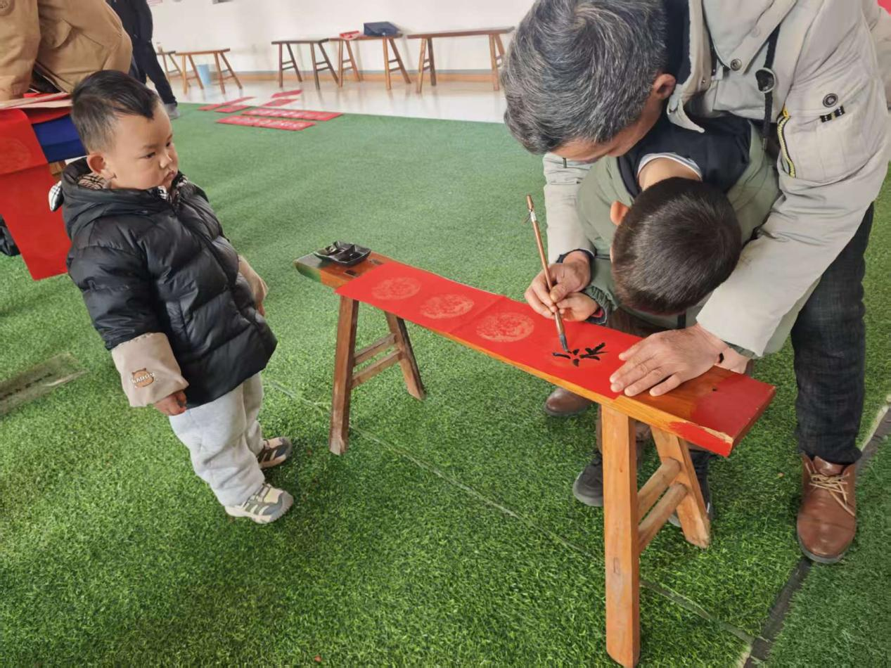 活动持续两个多小时,气氛温馨而热烈。志愿者们不仅准备了内容丰富的春联与福字,更耐心倾听、悉心回应村民需求:有的村民现场“点单”,定制融入家风训导、乡村振兴内容的专属春联;有小朋友在老干部党员手把手指引下,认真写下稚嫩却真挚的祝福;还有志愿者结合党建主题与新春文化,即兴创作、即写即送。一幅幅春联映红了群众笑脸,一句句祝福贴近了党群心声,村民们手捧翰墨佳作,笑意盈盈,携福而归。