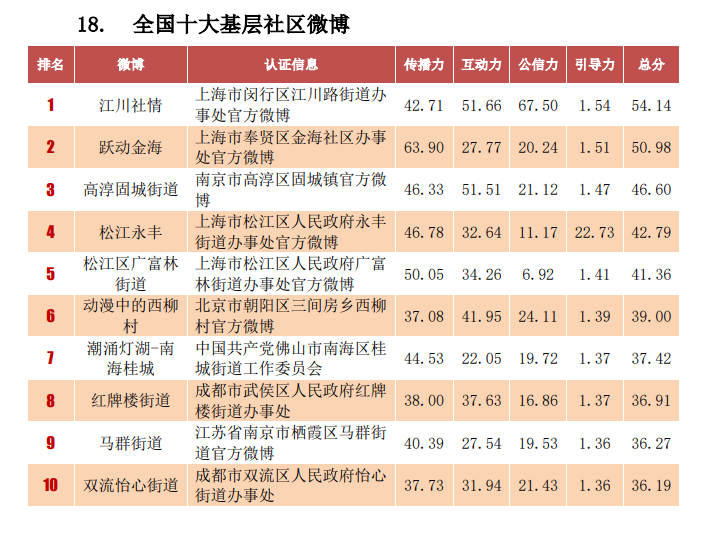 该榜单由微博平台出品,人民网舆情数据中心与人民网数据研究院提供学术支持,从传播力、服务力、互动力和认同度四个维度对全国认证政务微博进行综合评估。@高淳固城街道在各项指标中表现突出,尤其在覆盖面、互动频率与民生服务等方面优势明显。