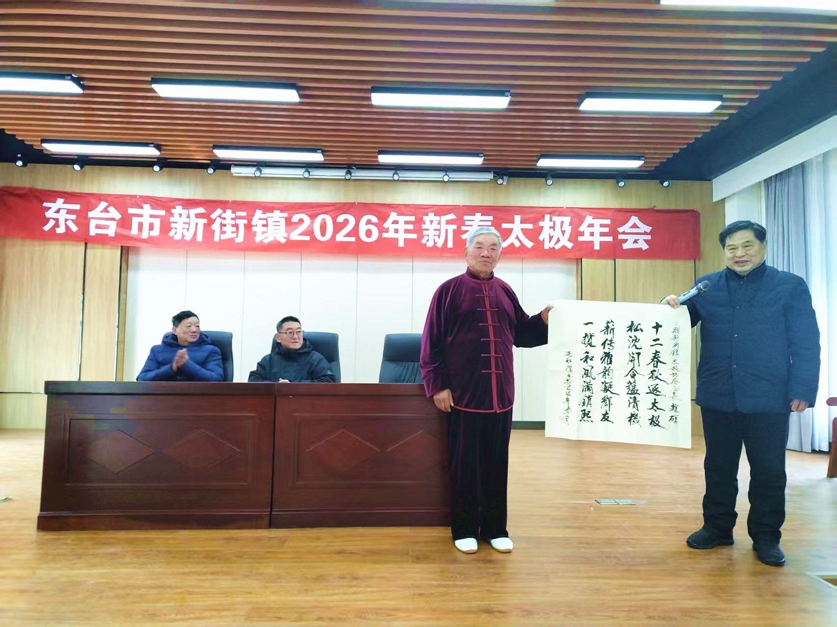 镇老龄委主任卞进和挥毫书诗祝贺并殷切寄语,太极之道,刚柔并济;传承之路,薪火不息。希望新街镇太极拳协会分会以此次年会为契机,吸纳更多热爱太极的同仁,深耕技艺、弘扬文化,让太极成为守护群众健康的重要载体,成为全镇精神文明建设的亮丽名片!