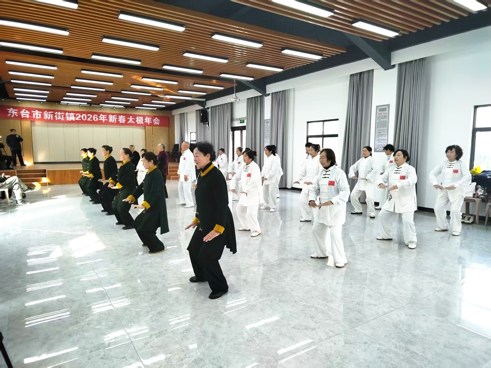 新华报业网讯 春节前夕,2月11日上午,新街镇2026年新春太极年会在方东村文化大礼堂举行,这也是该镇举办的首届太极年会。东台市太极拳协会会长王波带领协会队员到场开展拳术展示交流活动,新街镇涉老部门负责人和镇太极拳协会分会会长赵硕及部分太极拳爱好者参加活动。镇老干部党支部书记孙彪主持活动。