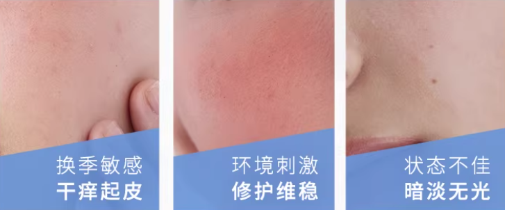 (2)功效兼顾即时与长效:不仅要能及时缓解泛红、干痒等突发不适,更要具备长效修护能力,帮助强化屏障,避免敏感反复。