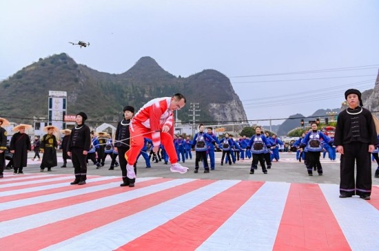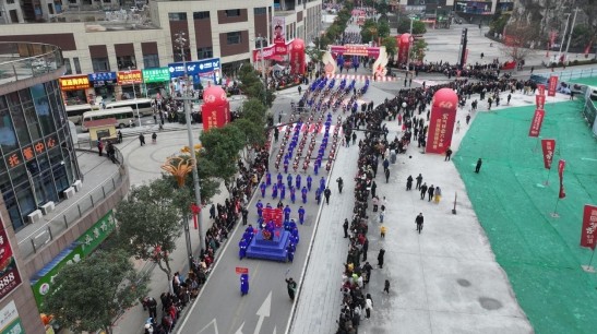 巡游队伍中,民族文化与时代精神交相辉映。松山街道城墙脚村的舞龙表演气势如虹,紫云职校引进的广州南沙百年非遗——黄阁麒麟舞首次在县庆舞台精彩呈现。彩龙翻腾、麒麟跃动,东西部协作的深情厚谊在传统与现代的交融中焕发新的生机。