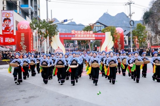 作为县庆系列活动的重头戏,2月11日上午,民族团结巡游庆典盛大举行。此次巡游是紫云自治县成立60周年系列庆祝活动的重要组成部分,全程约4.49公里,17支巡游队伍从印山广场有序出发,沿格凸大道、紫兴大道等主要路段稳步行进至紫云公园,沿途设置的三大主题展板依次亮相,生动回望紫云60年发展变迁,吉祥物“小紫燕”灵动穿梭其间,将欢庆氛围推向高潮。