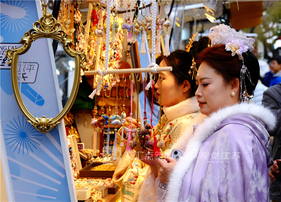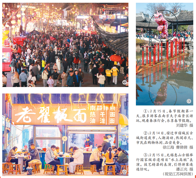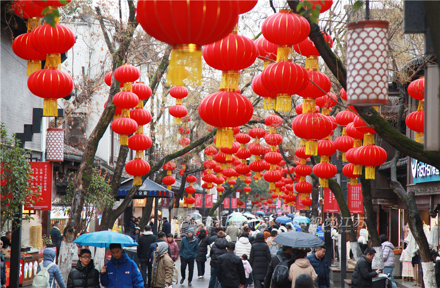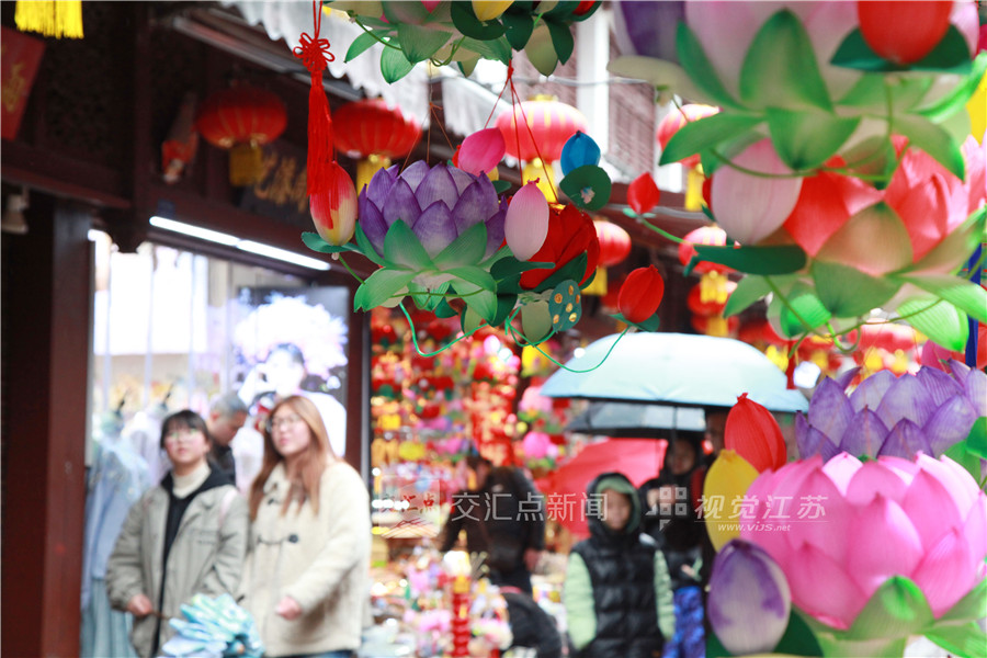 (特约摄影 刘建华 14:40摄 18:44上线)2月16日,春节假期第二天,很多游客冒着濛濛细雨在南京夫子庙景区游玩、购物,乐享春节假期。