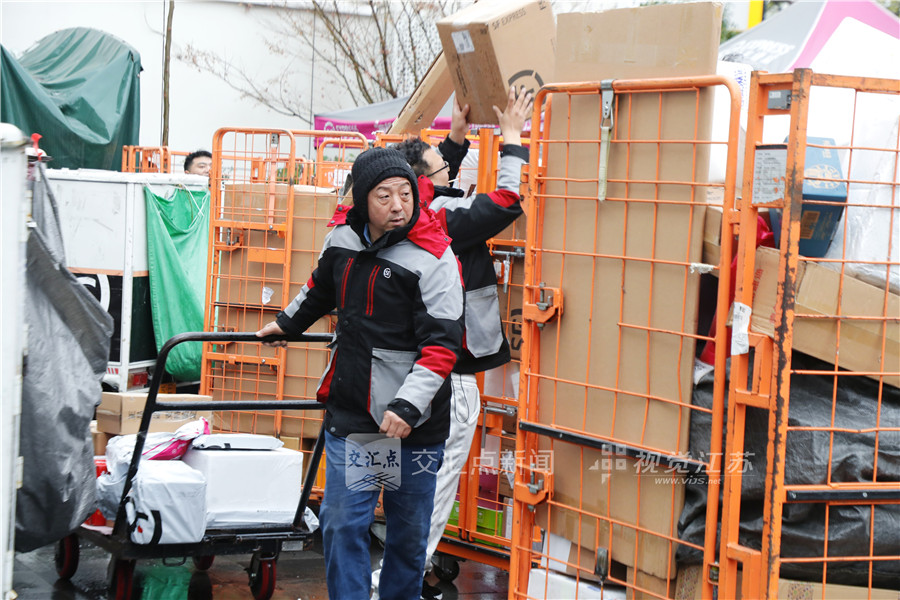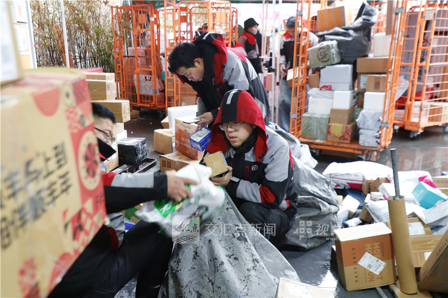 (特约摄影 陈弋 08:38摄 09:49上线)2月16日,苏州市姑苏区竹辉路一快递站,快递员正在整理快件,准备向客户投送。