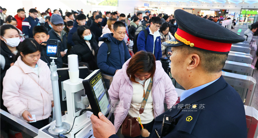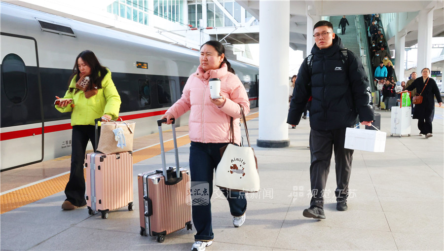 (特约摄影 耿玉和 08:43摄 13:04上线)2月16日,铁路连云港站,旅客乘坐动车组列车出行。当日是农历除夕,客流较节前高峰明显回落,铁路运行平稳有序,回家之路更从容。