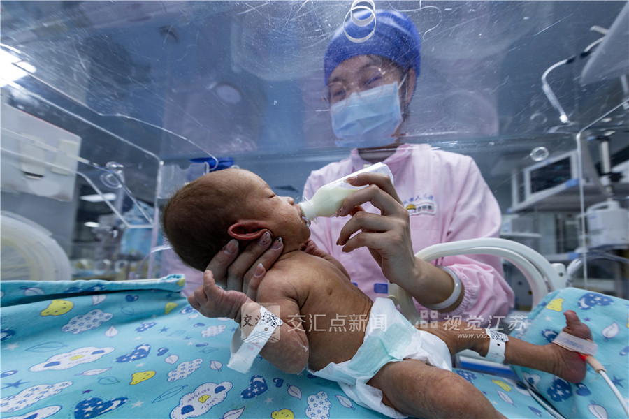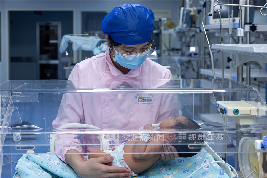 (特约摄影 汤德宏 08:41摄 10:37上线)2月16日, 在南京医科大学附属泰州人民医院新生儿科,护士为新生儿进行护理。当日是除夕,不少行业的工作人员依然坚守岗位,在工作中迎接春节的到来。