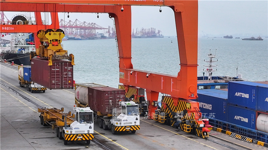 (特约摄影 施柏荣 14:11摄 14:56上线)2月16日,在张家港保税科技(集团)股份有限公司码头,工人们坚守岗位,船舶正在有序卸载货物,一派忙碌景象。春节期间,该公司统筹安排港口生产运行工作,保障春节期间港口生产不断档,货物不压港。