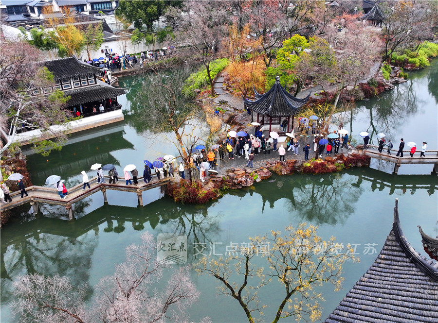 (特约摄影 王建中 11:50摄 13:33上线)2月16日,春节长假进入第二天,受冷空气影响的古城苏州雨雾弥漫,气温骤降,在拙政园、平江路及苏州博物馆等热门园林景区、古街水巷依然游客众多。人们撑着缤纷雨伞游园逛街品美食,感受雨中江南的别样韵味。