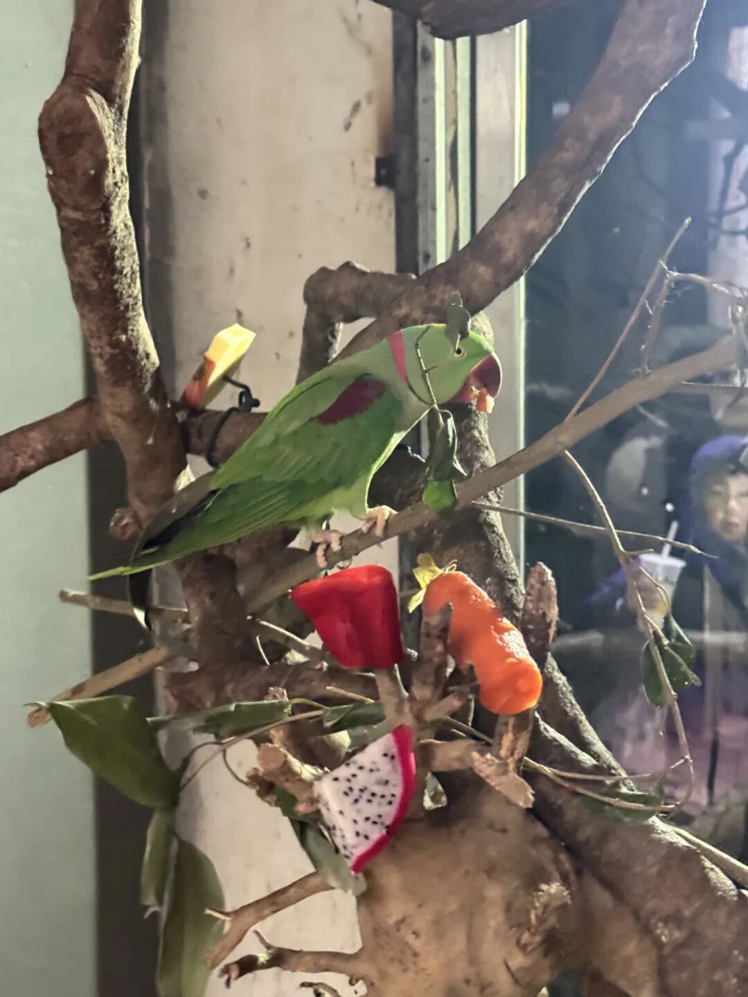 饲养员给大紫胸鹦鹉准备的年夜饭是五彩斑斓的拼盘,好看又好吃。