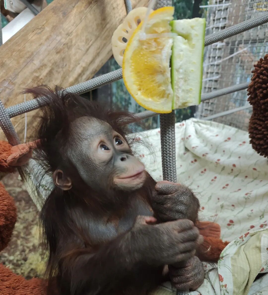 红毛猩猩“毛栗子”和“毛百万”两兄弟是红山第一批吃上新年“漂亮饭”的“毛孩子”。