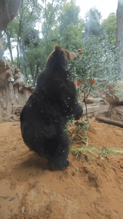 大口吃肉,马年当红。熊馆的年夜饭,主打一个新春氛围感,饲养员特意准备红彤彤的辣椒挂在一棵小树上,喜气洋洋。