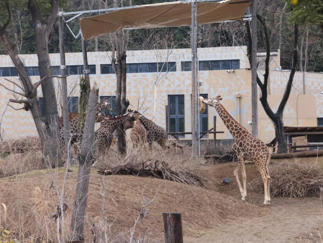 长颈鹿在“高空用餐区”吃年夜饭。