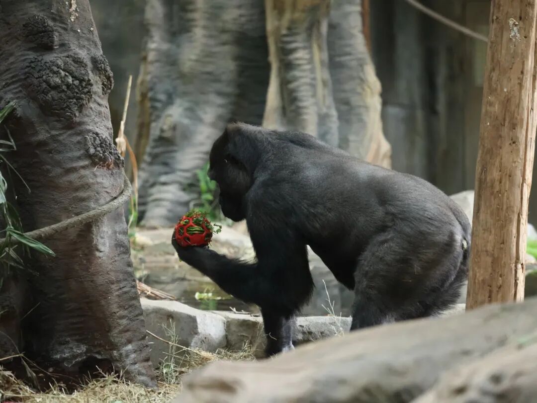 今年是大猩猩四兄弟在南京度过的第一个春节,饲养员给它们备了果蔬篮,兼具颜值和营养。