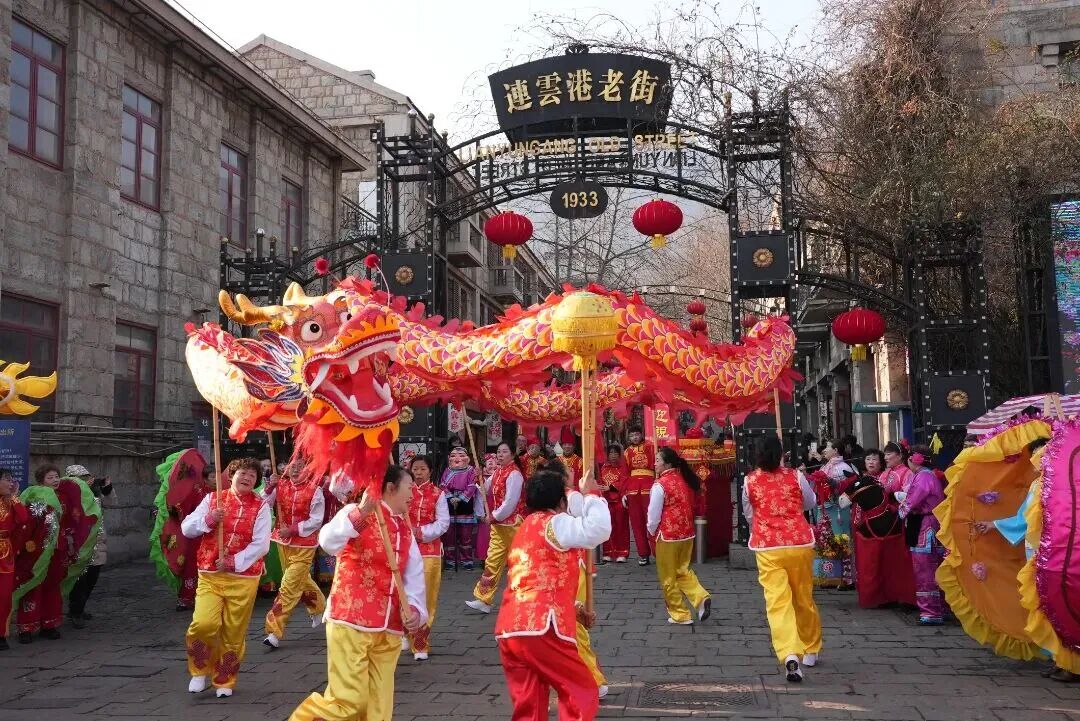 连云港的春节活动充满乡村风情和童趣。大年初一,连云港枫树湾迎来“乌镇戏剧节”与“大运河国际戏剧节”团队,带来《爱丽丝马年奇遇记》沉浸式儿童剧表演。而连云港老街从初一到初五变身大型新春游园会,舞龙舞狮穿梭巡游,非遗拓印、古风游戏、童年爆米花……让每一位游客都能找到属于自己的年味记忆。