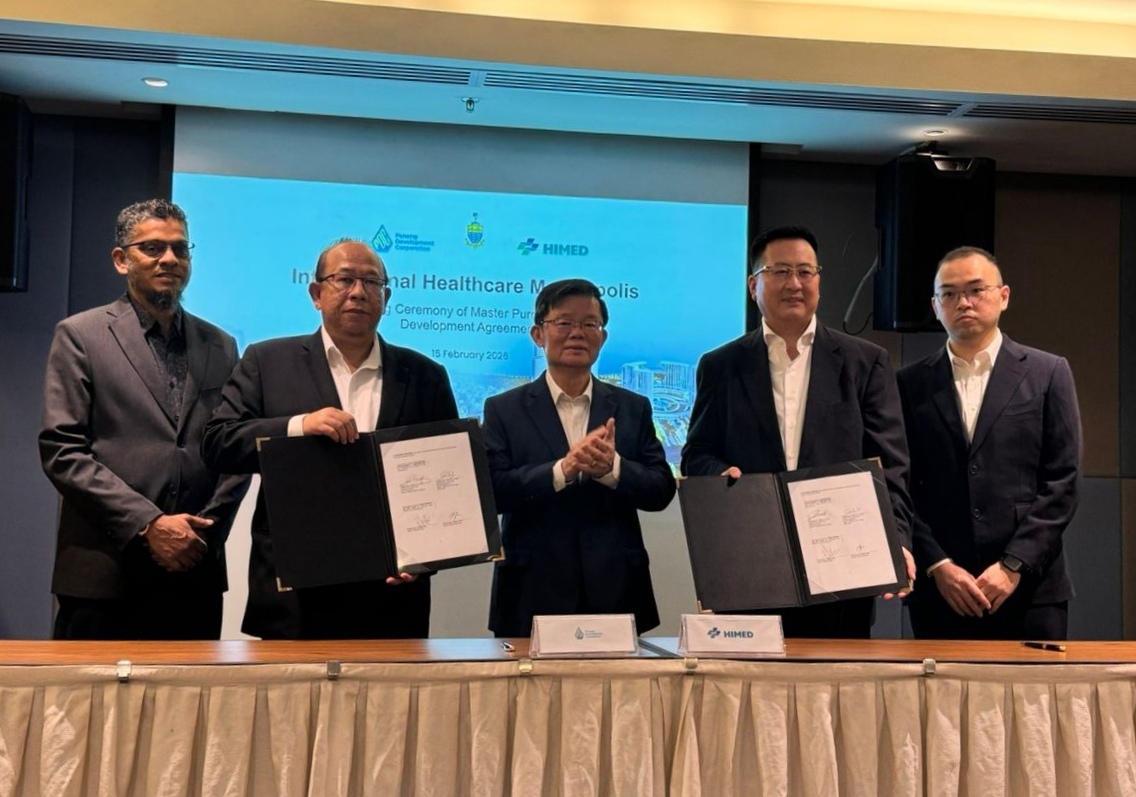 2026年2月15日,中国民营企业中固医疗投资集团与马来西亚槟城州政府旗下槟城城市发展集团(PDC) 在槟城举行隆重签约仪式,双方正式达成合作,共同开发建设槟城臻养都市(International Healthcare Medtropolis)项目。槟城州政府首长曹观友先生、PDC首席执行官拿督阿兹巴卡先生、槟城州政府相关部门负责人,中固医疗投资集团董事长张浩、中子星集团董事长聂玉声等嘉宾共同出席并见证签约。
