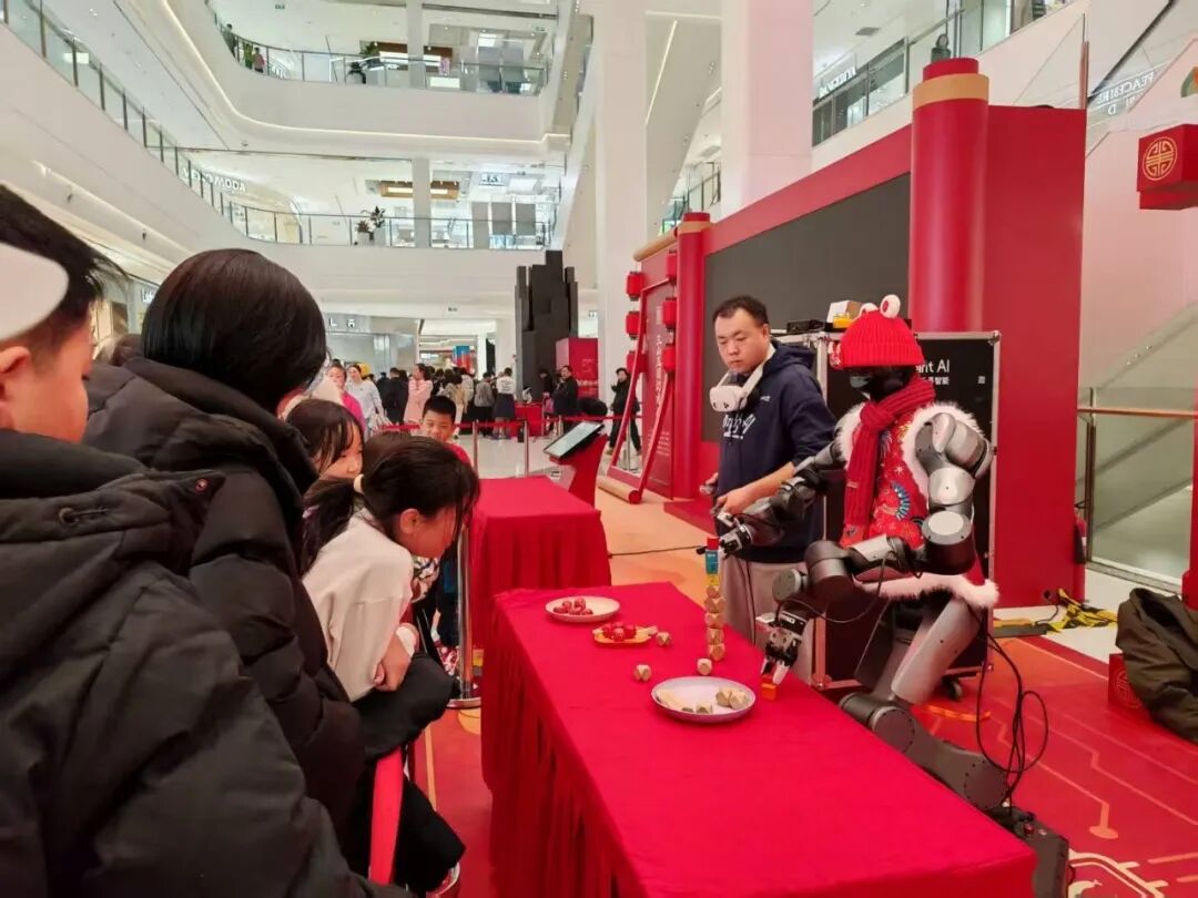 大年初三,北京五棵松万达广场,AI兔爷机器人、财神爷机器人迎宾送福,圆明园马首化身“小马数字人”正用多国语言轮番拜年,春晚同款人形机器人稳稳端出一杯现磨咖啡。