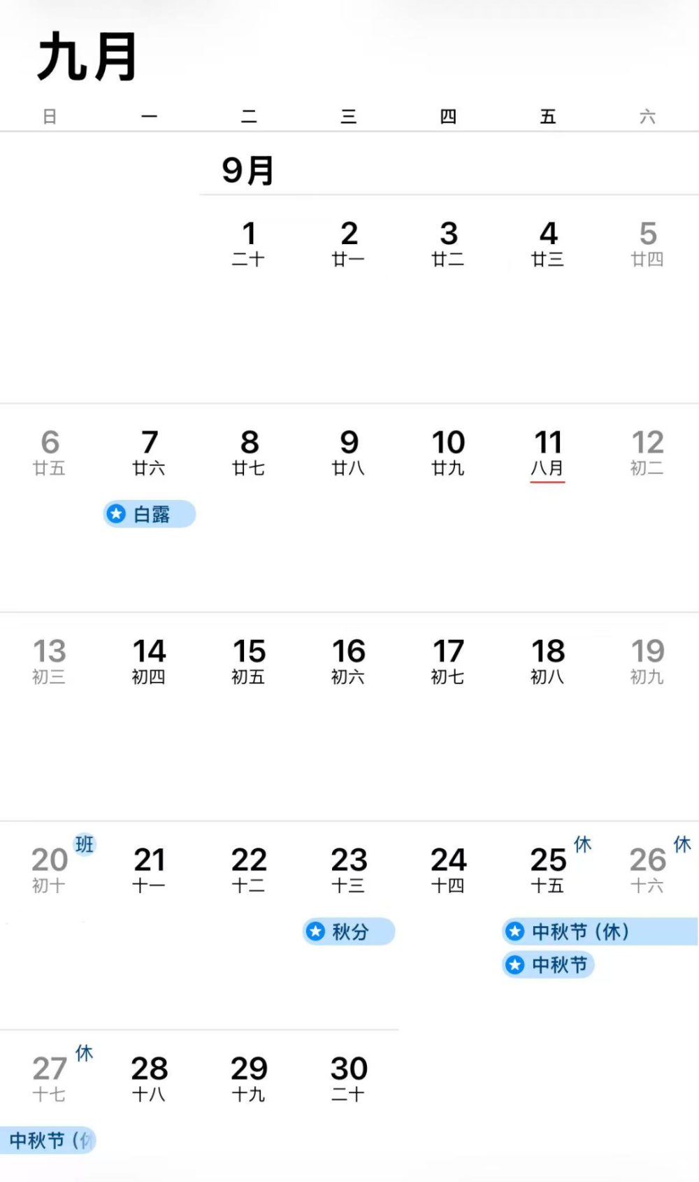 中秋节:9月25日(周五)至27日(周日)放假,共3天。