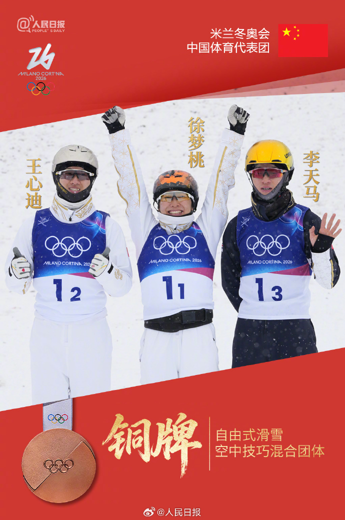 当地时间2月21日,米兰冬奥会自由式滑雪空中技巧混合团体决赛落下帷幕,由两位米兰冬奥会金牌获得者徐梦桃、王心迪以及铜牌得主李天马组成的中国队获得铜牌。在决定奖牌归属的最后一轮比赛,中国队的两名男选手都选择了难度5.1的动作,但落地时均出现失误,最终排在难度不高但发挥稳定的美国队以及男队员表现出色的瑞士队之后,获得铜牌。