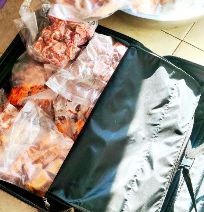 严格控制了一下行李,结果还是满满当当。各种菜、肉、零食……连砧板都得带一块新的。