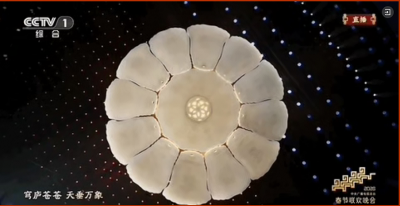 在北京主会场,利亚德运用舞台机械结构的灵动变幻,将机械升降屏、虚拟现实与超高清视觉投影融合,通过垂幕的收拢汇聚、投影的虚实交织,将整个舞台围拢成一幅缓缓展开的巨幅国画卷轴,为歌咏创意秀《贺花神》、舞蹈《丝路古韵》等节目营造出“人在景中、景随人动”的沉浸式意境,让国风文化更具时代感染力。