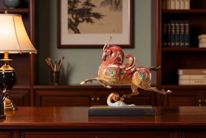 同步登台的,还有朱炳仁专为马年打造的“大师马”《龙马飞腾》和马年生肖山水铜印。《龙马飞腾》取材于国宝级文物“马踏飞燕”,双翅舒展、三足凌空,生动诠释龙马精神;马年生肖山水铜印则采用独创的熔铜艺术制作,承载着对全国人民马到成功的美好期许。
