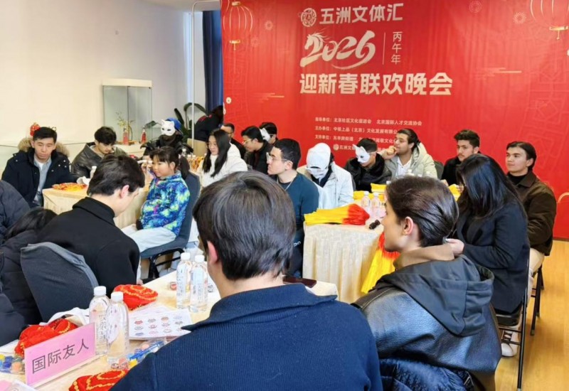 在五洲文体汇2026迎新春联欢晚会国际友人分会场,邀请北京国际人才交流协会嘉宾、多位国际友人和国际文艺爱好者参与交流,体验中国非物质文化遗产的魅力。