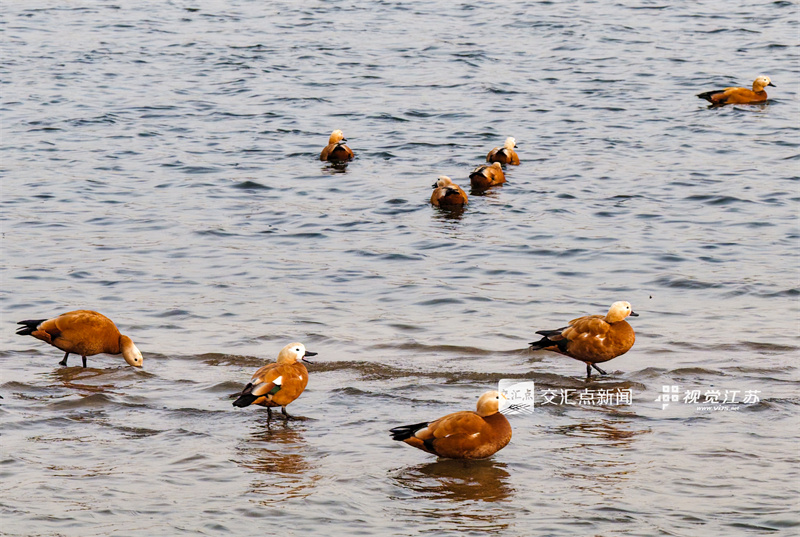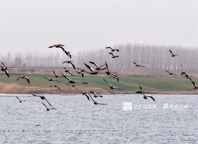 (特约摄影 丁华明 9:23摄 10:20上线)2月24日,一群国家“三有”保护动物赤麻鸭在沭阳县新沂河湿地栖息、飞翔,构成一幅生机勃勃的闹春图。