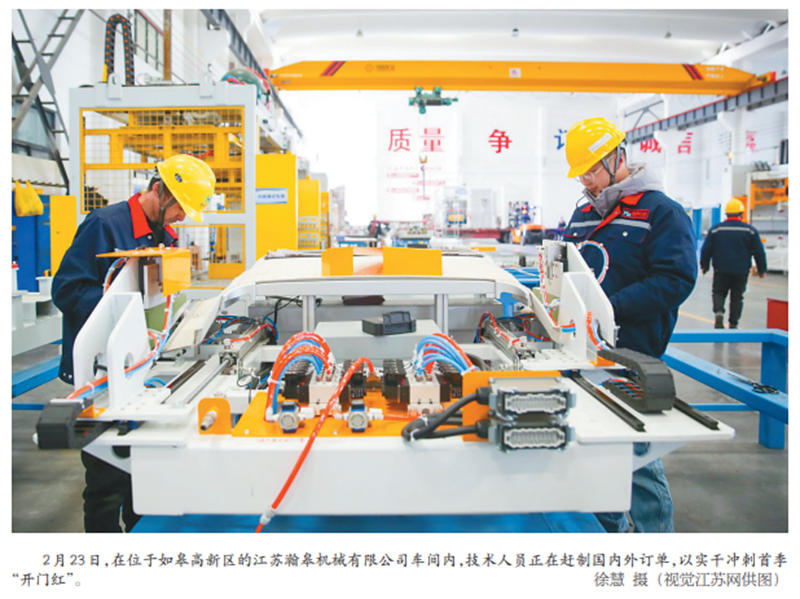 (特约摄影 汤德宏 9:02摄 10:35上线)2月24日,工人在位于泰州市海陵区的江苏金桥焊材科技有限公司生产线上忙碌。当日是春节假期结束后的第一个工作日,泰州市各企业纷纷开工生产,力争实现“开门红”。