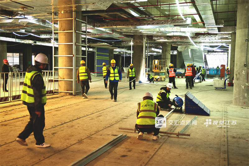 (特约摄影 许晨 9:13摄 10:30上线)2月24日,徐州市云龙区,施工人员在徐州德基广场项目建设现场忙碌,一派繁忙景象。