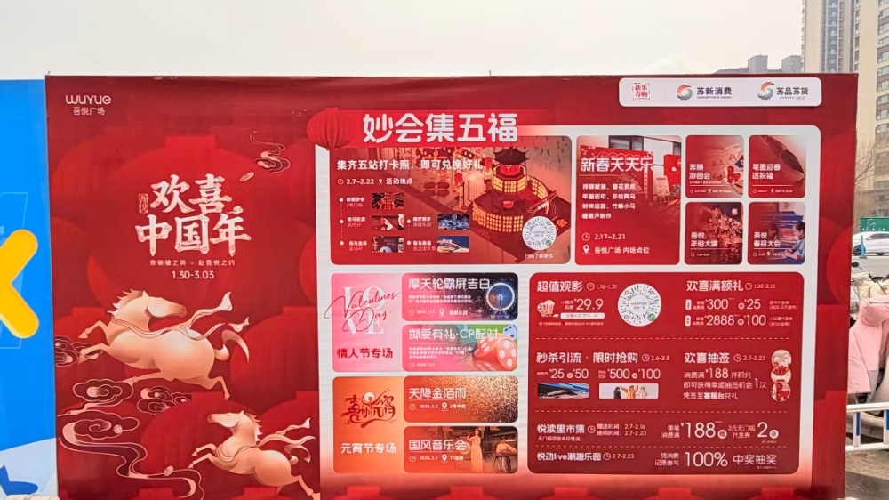 9天“最长春节假期”叠加1750场“乐购新春”江苏春节特别活动,让全省实体商圈活力迸发。2026年2月15日至23日,全省重点商贸流通企业累计实现销售额125.2亿元,同比增长9.8%。
