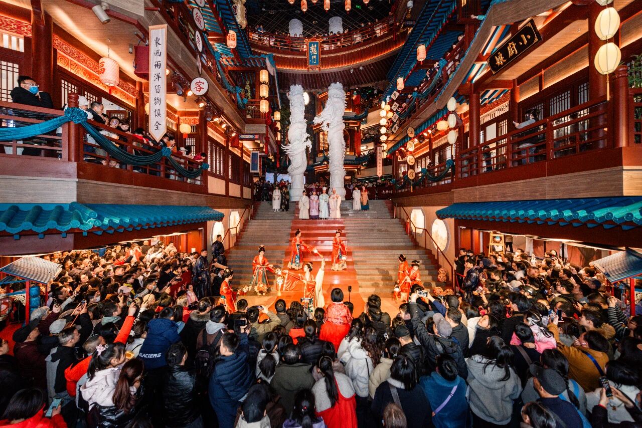无锡百联奥特莱斯广场醒狮腾跃、非遗锡剧悠扬婉转、唐宫夜宴舞水袖生风,从非遗雅韵到国潮盛宴精彩不重样,沉浸式的文化体验带动假期客流达13.1万人次,销售额增长30%。
