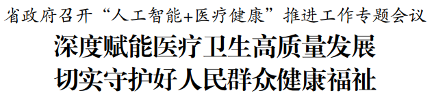 交汇点讯 2月24日,省政府召开“人工智能+医疗健康”推进工作专题会议,深入学习贯彻习近平总书记关于人工智能发展和健康中国建设的重要论述,全面落实党中央、国务院关于“人工智能+”决策部署,按照省委工作要求,促进人工智能在医疗卫生领域的规范应用,创新开展预防、诊疗、康复、健康管理等全链条智能服务,更好满足人民群众日益增长的健康服务需求。省长刘小涛主持会议并讲话。