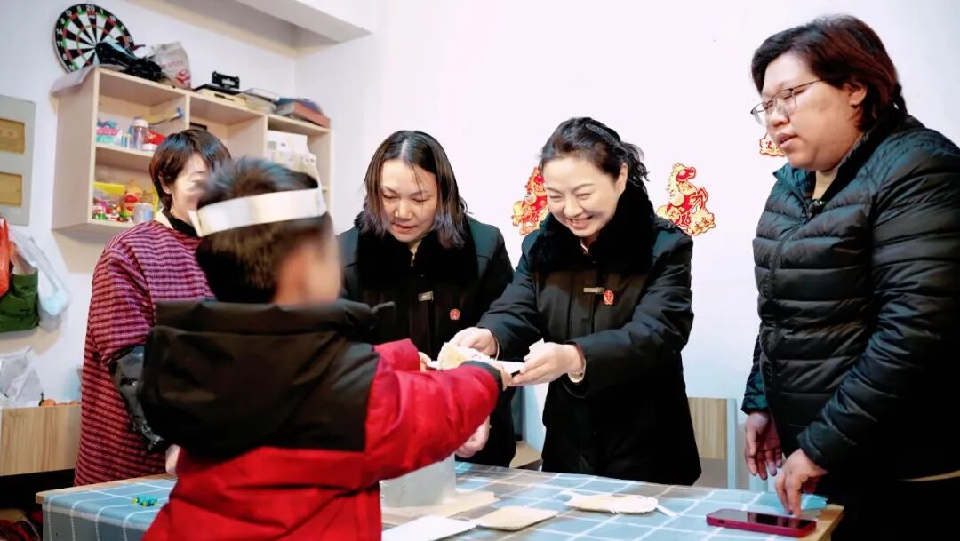 转眼已是17时,桌面也很快摆满了队列整齐的饺子。法官一行人准备回淮。冬冬牵着法官的手,依依不舍。