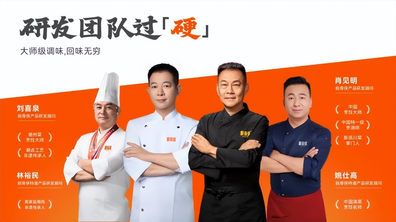 在产品打造上,脱骨侠的核心逻辑是“精准解构风味,守住品质底线”。其核心单品无骨鸡爪坚持人工剔骨,去骨率达98%,同时保留脆骨、掌中宝和筋肉部分,还原鸡爪本身的口感。为了打造差异化风味,脱骨侠组建了30+人的专业研发团队,核心成员深耕肉制品研发超20年,还邀请了新派川菜掌门人肖见明、客家盐焗鸡非遗技艺传承人等烹饪大师担任外聘顾问,将非遗工艺与现代食品技术结合。