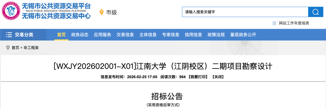 (3)江南大学(江阴校区)二期科研创新组团项目,建筑面积53000㎡,其中,地上建筑面积44500㎡,地下建筑面积8500㎡。主要建设内容为实验实习用房、科研用房、后勤及附属用房等内容。