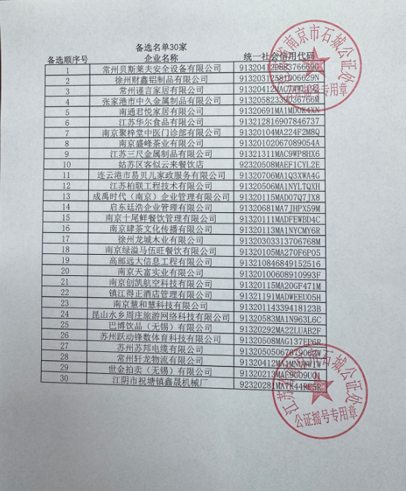 交汇点讯 2月27日14时,2026江苏省城市足球联赛(“苏超”)小微企业商务遴选抽签摇号在南京市石城公证处圆满举行。在全程公证监督下,32家拟中选企业、30家备选企业名单现场产生,即日起进入约10天的资格复核与公示环节,最终合作名单将在复核通过后正式公布。