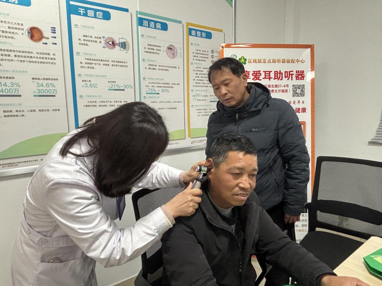 在听力筛查与耳道检查环节,医护人员为残疾人一对一检测听力,现场建立健康档案,针对听力下降、耳鸣、耳道炎症等问题给出个性化干预建议,指导助听设备的正确使用与维护,让大家在家门口就能享受到专业、便捷的听力健康服务。社工与志愿者同步发放爱耳护耳宣传手册,面对面答疑解惑,把健康知识送到群众身边。
