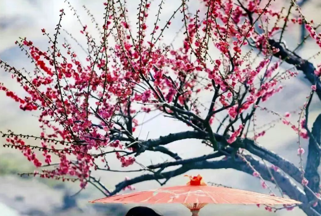常州的红梅公园里,近千株红梅、白梅、绿萼与飞檐翘角撞个满怀;镇江句容天王镇唐陵村的三百多亩梅林与樱花、海棠轮番上岗。