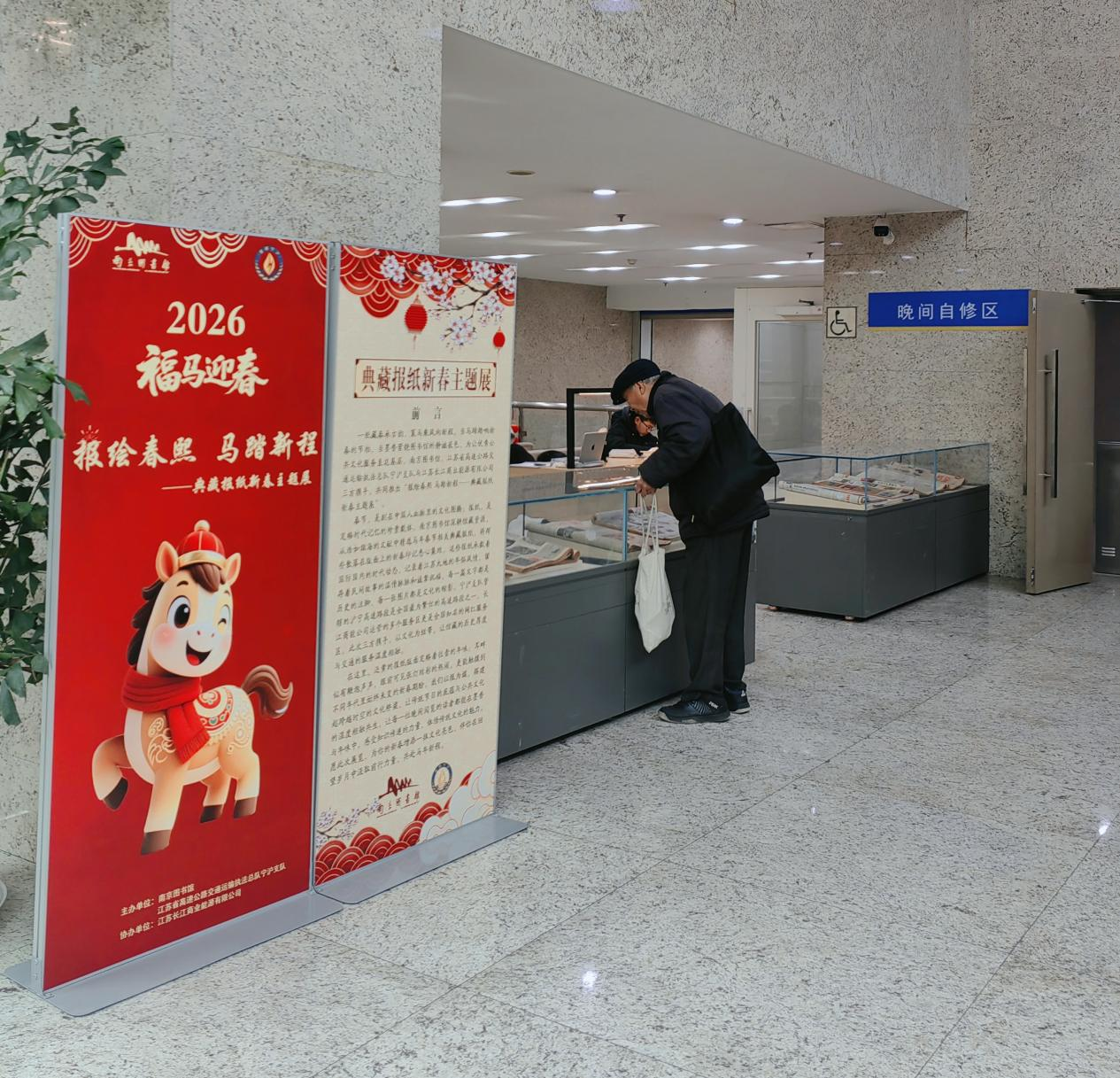 交汇点讯 春节期间,南京图书馆与江苏省高速公路交通运输执法总队宁沪支队再度携手,共同推出“报绘春熙 马踏新程——典藏报纸新春主题展”,为南来北往的旅客呈上一份别具韵味的文化年礼。