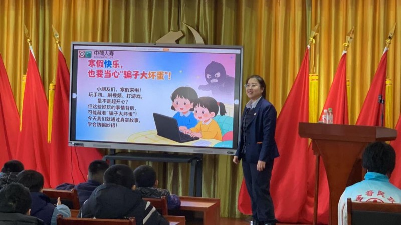 活动现场,孩子们专注投入,“寒假防骗小卫士训练营”主题金融反诈讲座正式开讲。中荷人寿金融讲解员先带孩子们观看了公司自制公益反诈宣传片,接着结合课件里的真实案例,讲述了两个常见骗局:10岁孩童被冒充民警的骗子诱导开启屏幕共享,导致亲属钱款被盗刷;14岁少年售卖游戏账号时,被虚假客服以缴纳保证金为由诈骗。讲解中,宣讲员结合课件要点提问互动,孩子们踊跃举手抢答,现场氛围十分热烈。课程最后,宣讲员带领孩子们学习防骗三大法宝,通过趣味问答巩固知识,帮助孩子们轻松掌握防骗技巧,识破各类诈骗花招。