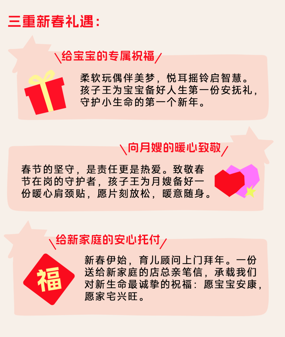 福启新岁,爱伴新生。今年春节,孩子王首次发起“新春暖护行动”。