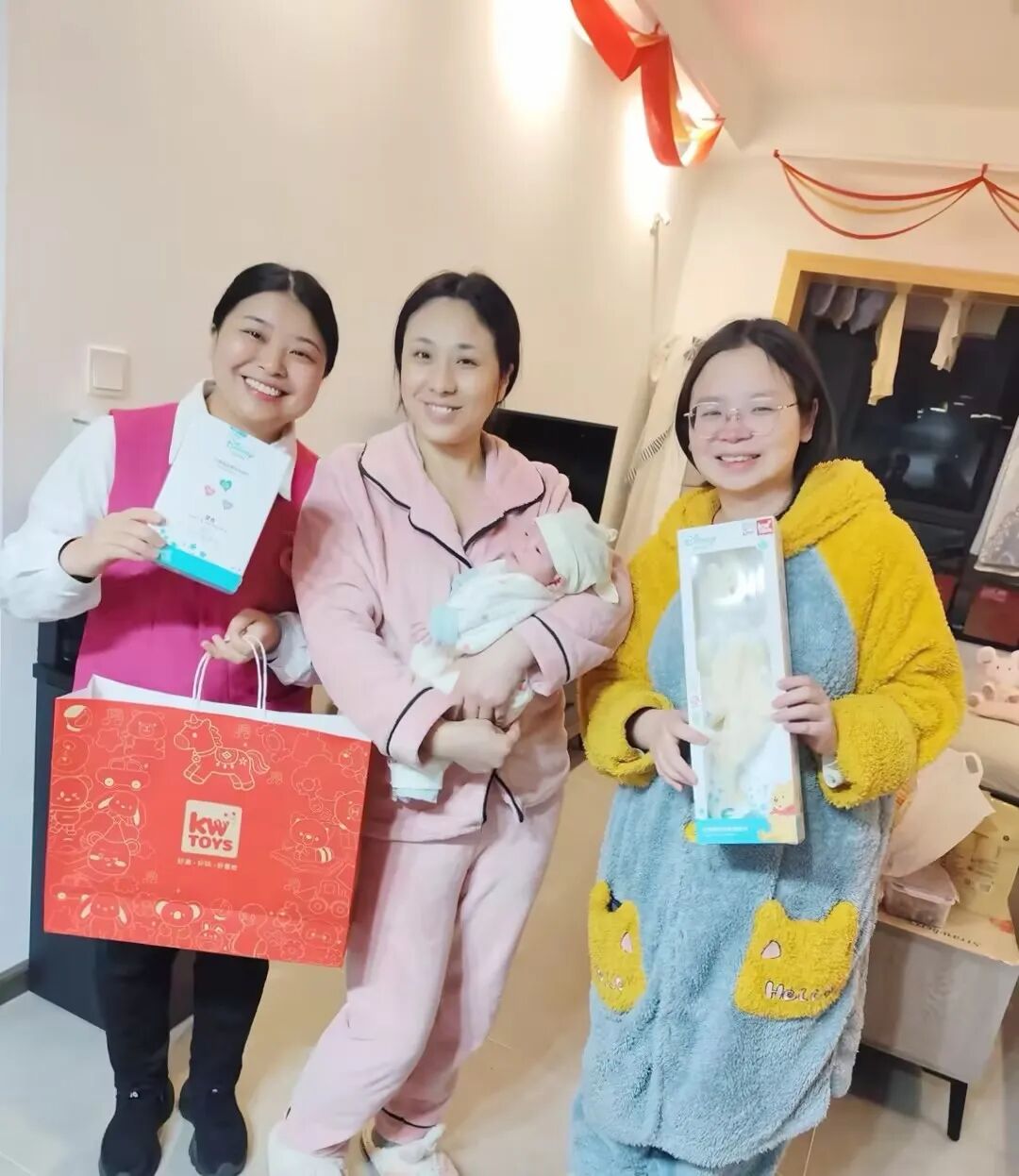 在湖北襄阳,一位新手妈妈收到了两份温暖。一份来自春节留守的月嫂——“她春节愿意留下来帮忙,我们非常感激。她都没闲下来过,照顾宝宝特别上心。”另一份来自上门拜年的育儿顾问——“没想到她们还特意来拜年、送新生礼,这份心意让我觉得自己被重视了。”