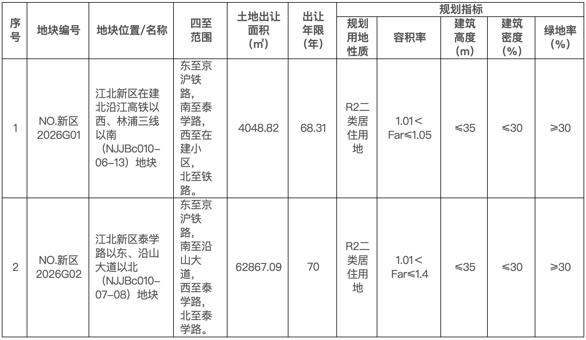 江北新区推出的2幅宅地均位于江北高新片区,容积率分别低至1.05和1.4,具备打造低密宜居住宅条件。根据土地出让条件,2幅地块均主要用于建设房票房源。